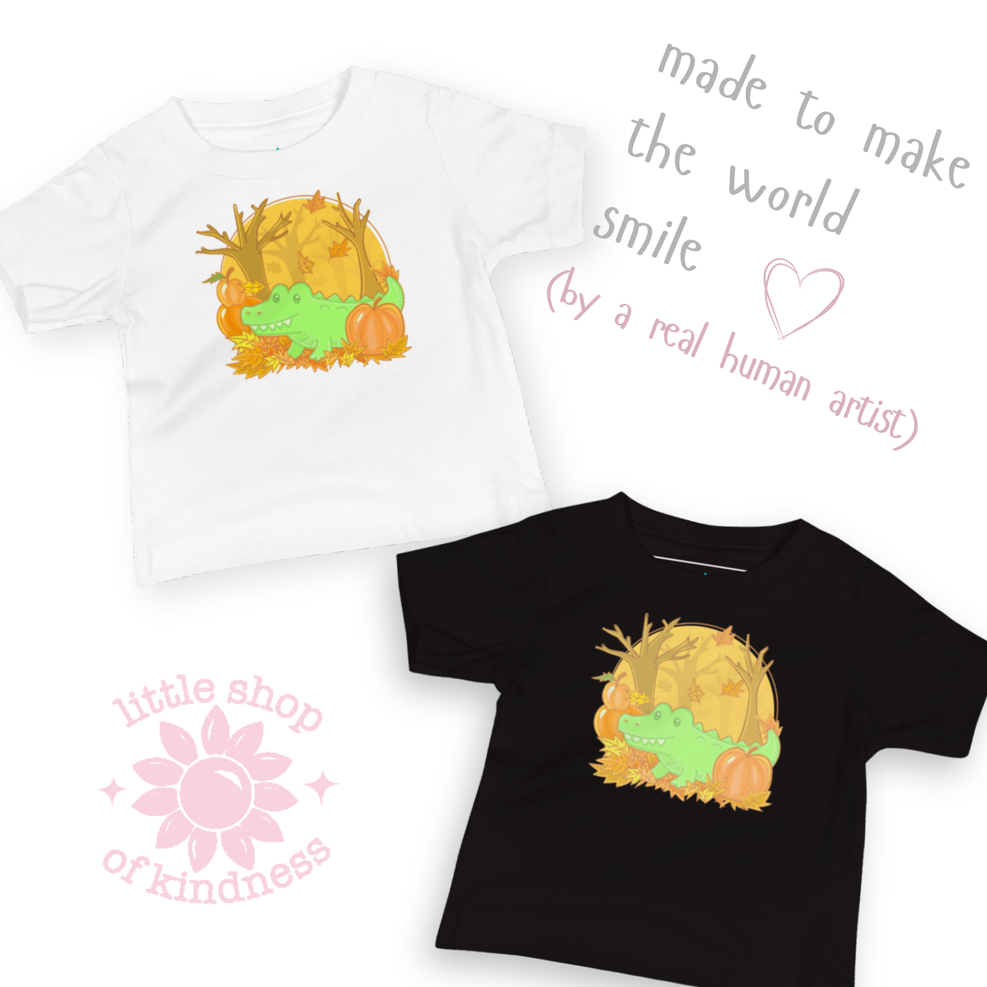 When the leaves turn golden and pumpkins pop up on porches, our quirky Alligator comes out to play! This gator may be from the swamp, but he knows that fall means leaf piles to jump in, pumpkins to collect, and cozy adventures to share. With a big grin and bright autumn colors, he’s ready for hayrides, school days, and every pumpkin patch photo-op.