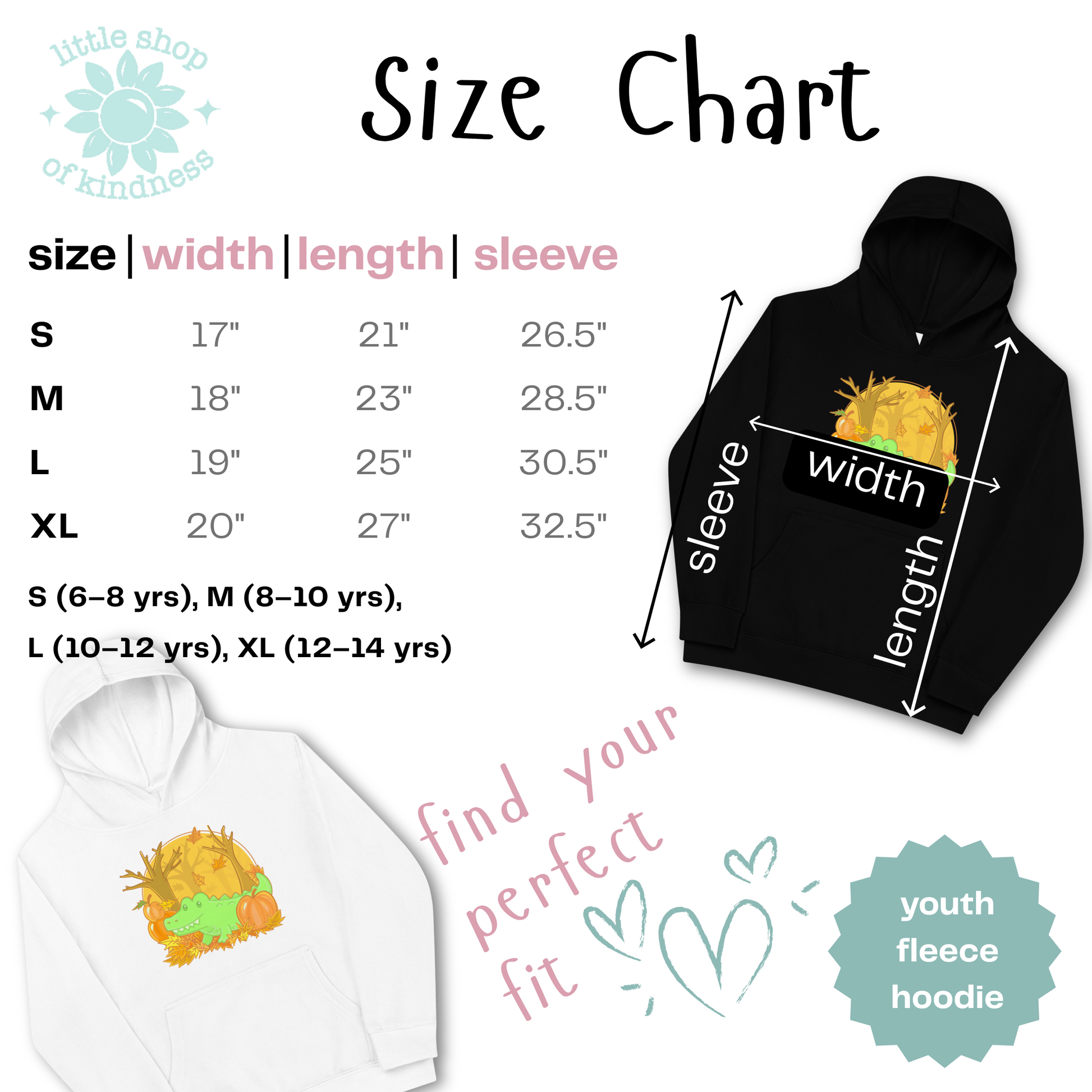 🧒 Size Guide (Kids Fleece Hoodie)