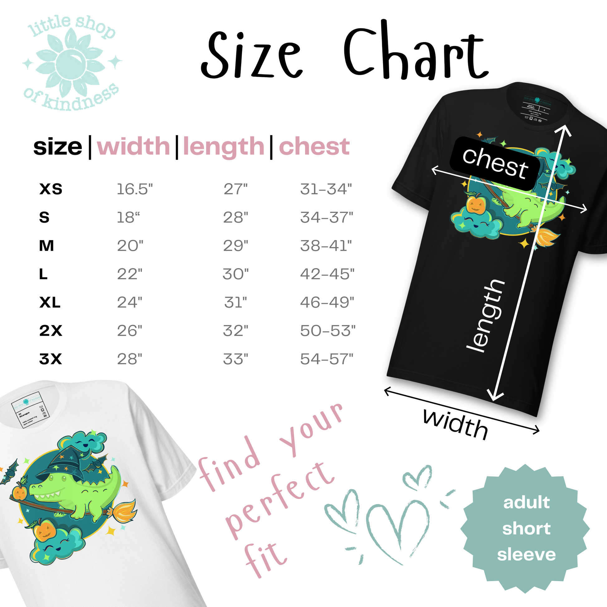 Size | Length (in) | Width (in) | Chest (in) |