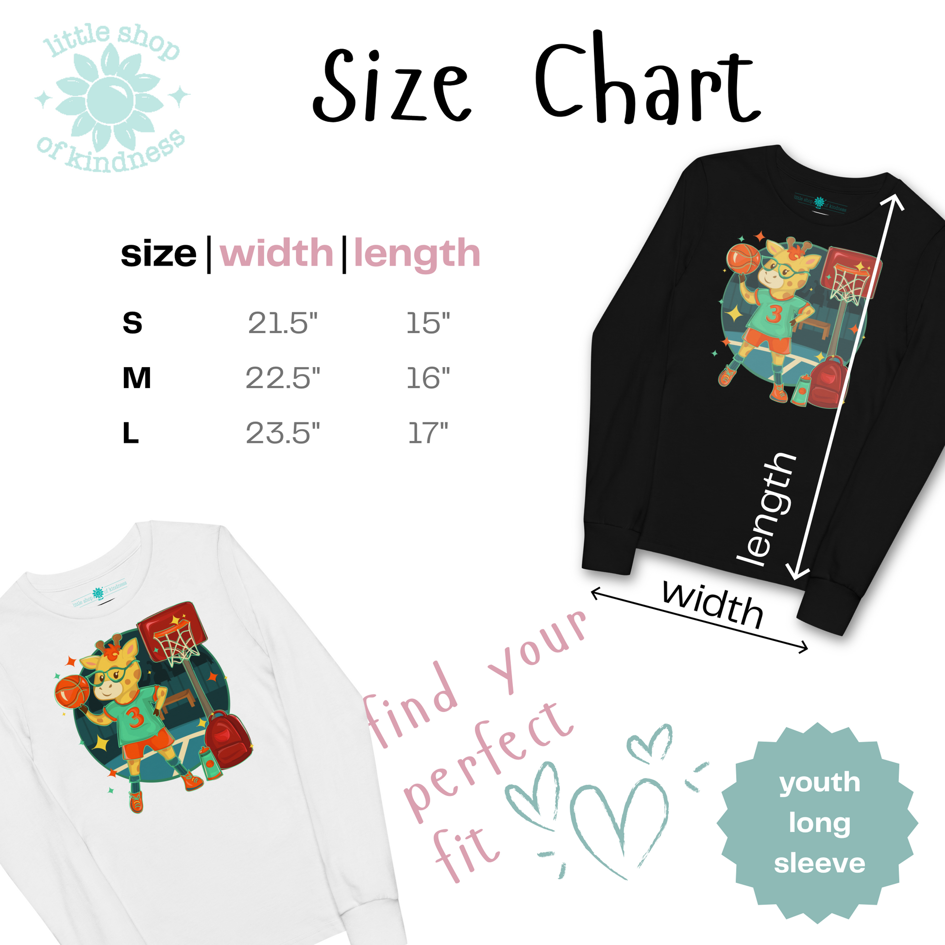 This cozy long sleeve tee wraps your kiddo in that same playful energy. Soft and breathable for everyday comfort, yet durable enough for school days and gym class, it is the perfect shirt for chilly mornings, autumn afternoons, or any time a little extra warmth is needed.