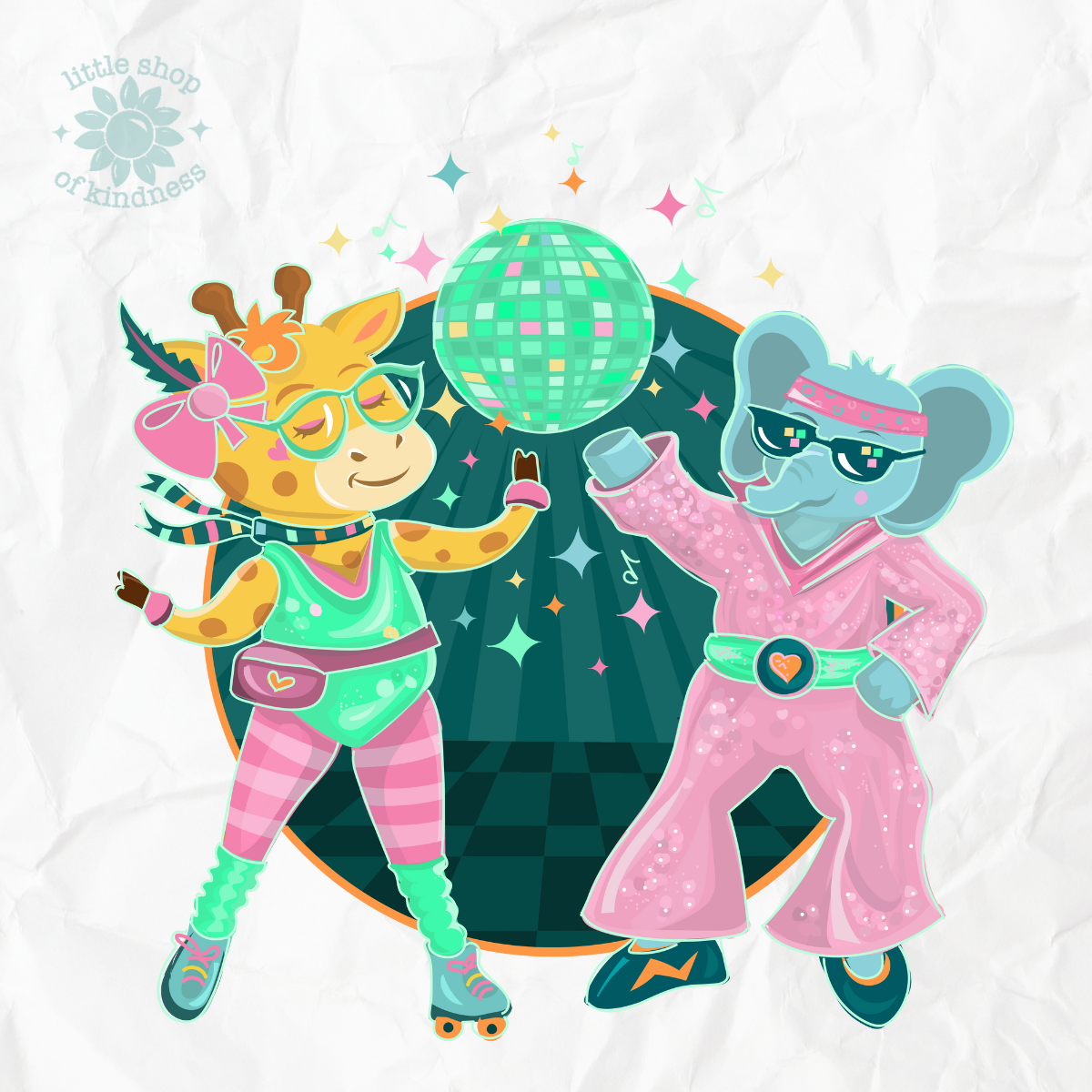 Step onto the dance floor with Sophie the Giraffe, who’s ready to boogie all night long! Dressed in her sparkly disco outfit, Sophie reminds us that joy shines brightest when we let ourselves be playful and free. With stars glittering around her and music in the air, she’s a little reminder that life is always better with a touch of rhythm and sparkle. This tee is perfect for anyone who loves retro vibes, dance nights, or just carrying a little extra groove into their day.