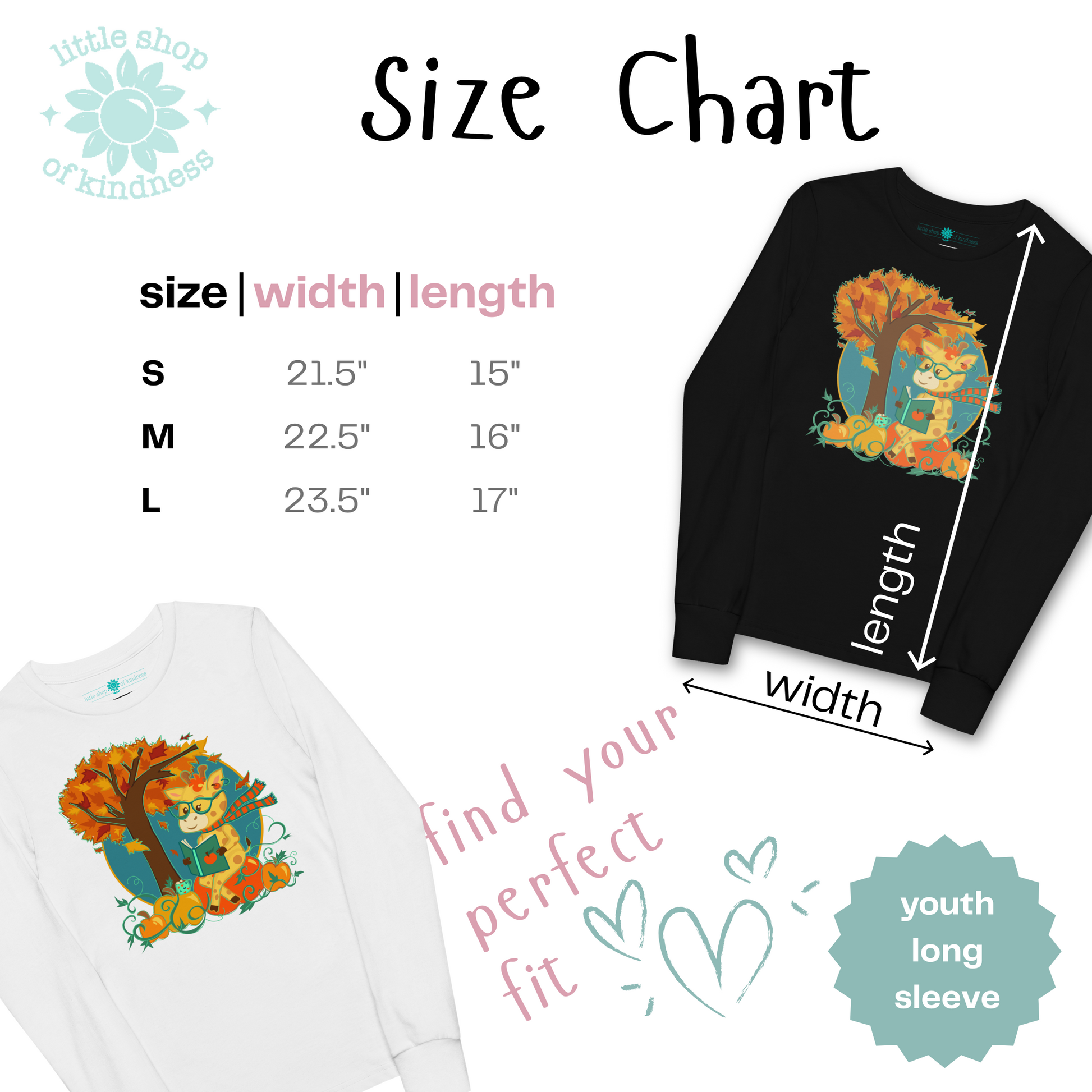 This long sleeve tee wraps your child in that same autumn warmth. Soft, breathable, and durable, it is perfect for school days, pumpkin patch visits, or jumping into leaf piles. Printed with eco friendly, non toxic inks that are safe for kids and gentle on the planet.